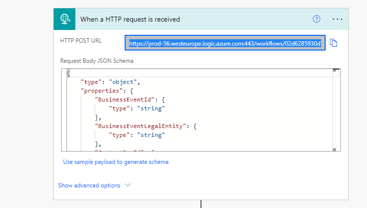 This step is exactly the same as step 2, but calling the action WorkflowWorkItems-complete instead of WorkflowWorkItems-validate. That’s it, we have completed our Power Automate, let’s see now how to configure the BEs to make them trigger it through Http request.