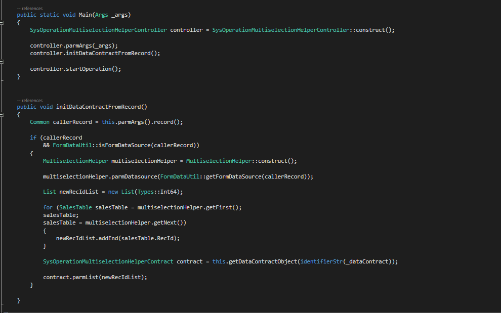 In previous video/post we saw how we could use the selected records in a form in a SysOperation process. In my suggested solution we put the record Ids in a valid Data Member collection and we used them after that. I used a Container because in the example I was thinking on selecting a few records for it, but I was thinking that this decision could drive you to a misunderstanding of me saying that you have to use a container in every situation. In this video/Post we are going to see why you shouldn’t use a container if a big number of records are expected to be treated. And as an alternative I put here how would it be using a List.