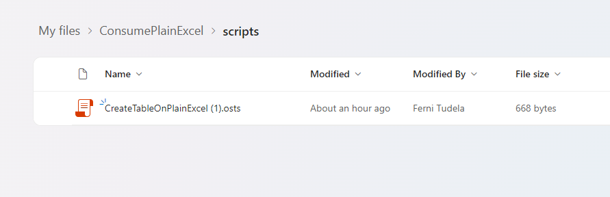 Assuming we have a folder in OneDrive where we receive the plain Excels files, and we locate the script in a different folder in One Drive too: