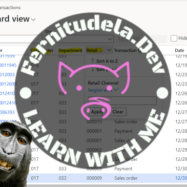 This post-video is going to focus in the D365FO dimensions tables structures and how to get the descriptions for all your dimensions in a generic way, without having to go to the specific table in each case. … More Learning about D365FO dimensions, and how to get the description in a generic way in X++.